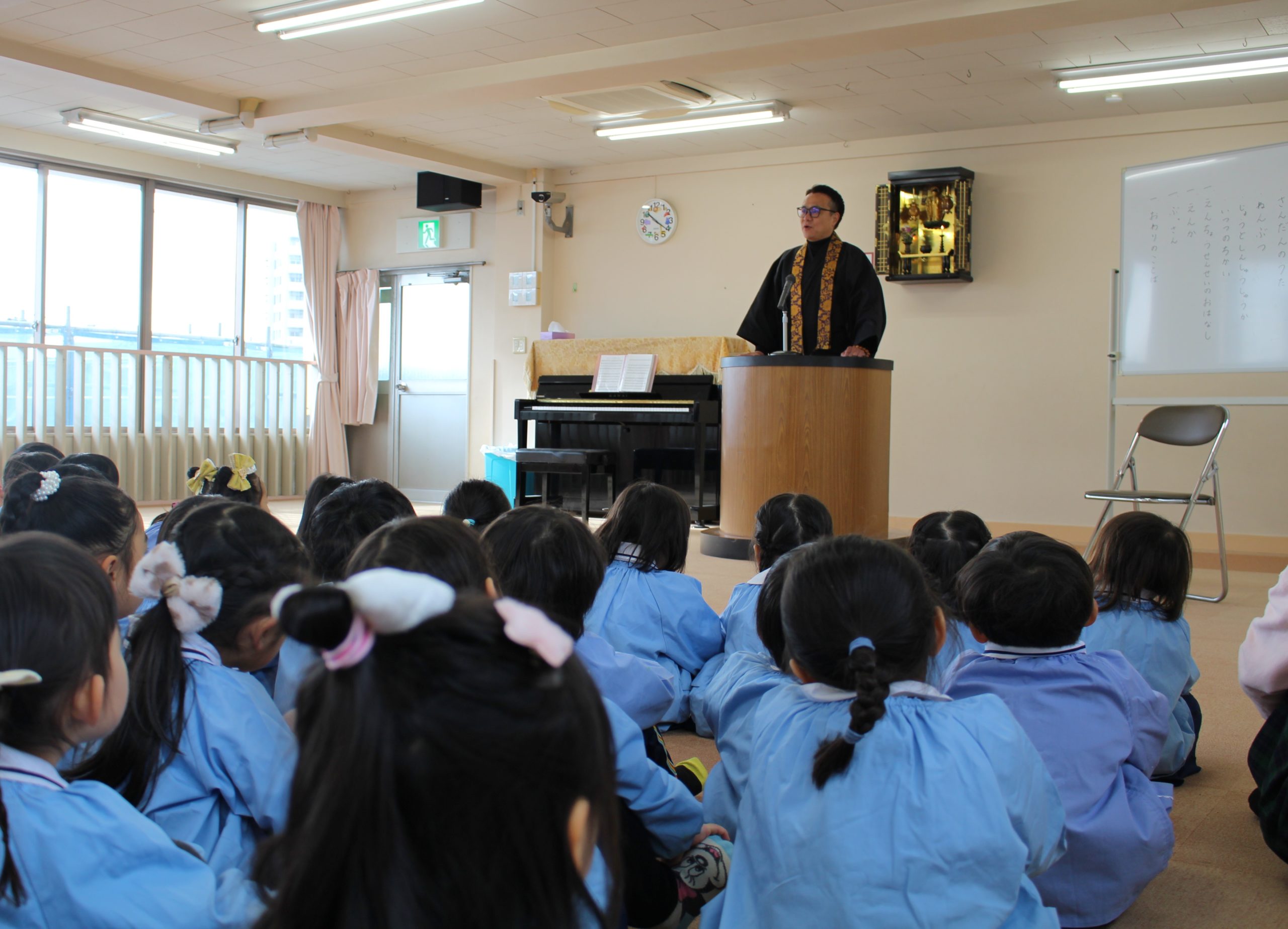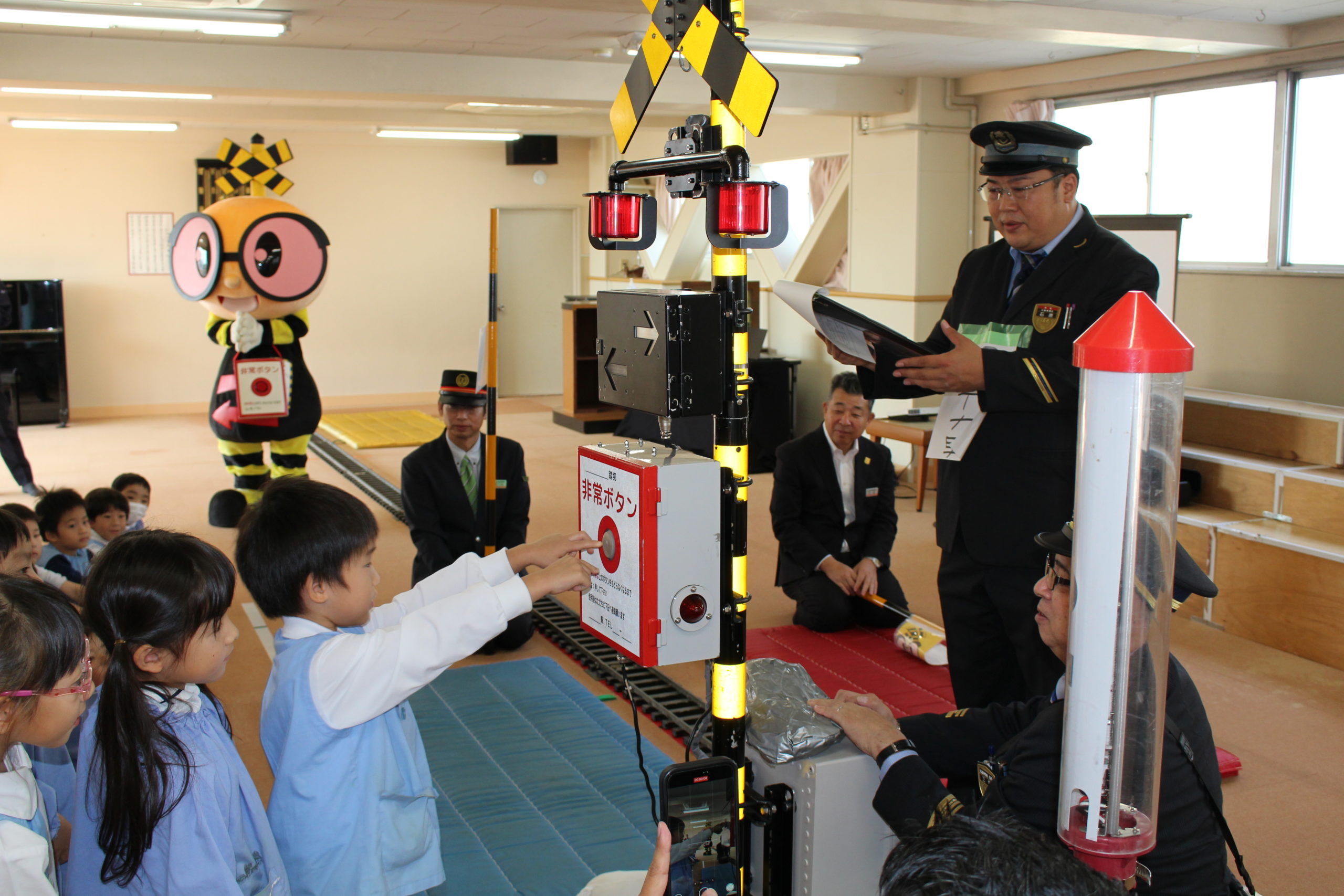 年長組、年中組のよい子さん達が踏切安全教室に参加しました! |